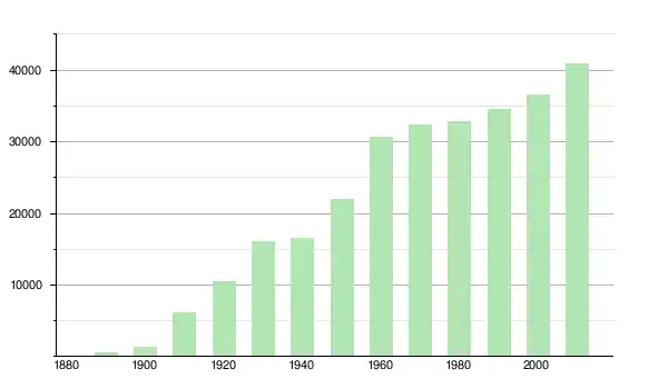 | 1960 | 30 604 | ▲ +38,91 % | |