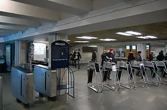 Mise en service en 1982, elle est desservie par les rames de la ligne M2. Le service est arrêté ou perturbé depuis l'invasion de l'Ukraine par la Russie en 2022.