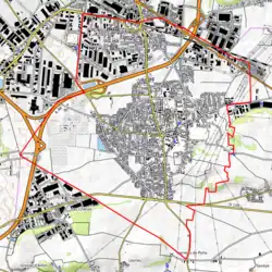 L'occupation des sols de la commune, telle qu'elle ressort de la base de données européenne d’occupation biophysique des sols Corine Land Cover (CLC), est marquée par l'importance des territoires artificialisés (59,1 % en 2018), en augmentation par rapport à 1990 (39,9 %). La répartition détaillée en 2018 est la suivante : zones urbanisées (32,7 %), terres arables (32,2 %), zones industrielles ou commerciales et réseaux de communication (19,3 %), zones agricoles hétérogènes (8,6 %), mines, décharges et chantiers (6,6 %), espaces verts artificialisés, non agricoles (0,5 %)[13].