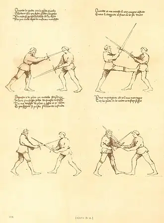 - Aucun document n'indique le type d'épée utilisée par Miquelot et ses adversaires. Il peut s'agir aussi bien d'une épée large (rigide et lourde) que d'une épée souple et relativement légère.