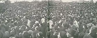 La foule rassemblée est évaluée entre 40 000 et 50 000 personnes[F 4],[N 28], certains auteurs donnent le chiffre de 70 000 personnes[1],[B 4],[N 29]. Un participant l'évalue à une valeur maximale de 100 000 personnes[N 30], valeur reprise dans certaines publications[G 6]. Cette foule rassemble toutes les classes de la société[N 31],[G 31], des gens pauvres aux personnes de la bourgeoisie et de la noblesse, des personnes peu instruites aux professeurs d'université, avocats ou juristes. Toutes les tranches d'âge sont également représentées[G 30], et il y a des catholiques fervents comme des personnes athées ou agnostiques[N 32].
