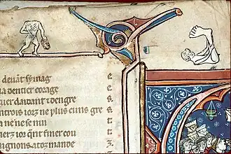 Ce manuscrit[7] est attribué à Jean de Senlis (pour le texte) et à Maître Fauvel pour les enluminures ; il date de 1327 et est composé de 189 folios ; le manuscrit est la deuxième partie d'un ouvrage dont la première partie, un légendier, est à la BnF, cote Français 183[8].