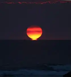 Le mirage en forme de vase étrusque est un phénomène optique qui se présente lorsque la lumière produite ou réfléchie par un objet céleste subit une réfraction à travers une couche atmosphérique d'air froid donnant naissance à un mirage inférieur, l'ensemble apparaissant sous la forme d'un vase étrusque. Grâce à leur grande taille apparente depuis la Terre, la Lune et le Soleil sont les deux astres qui offrent les manifestations les plus distinctes de ce phénomène[1],[2]. Cependant, tous les astres ayant une magnitude suffisamment faible (qui éclaire suffisamment) sont susceptibles de donner naissance à tel mirage.
