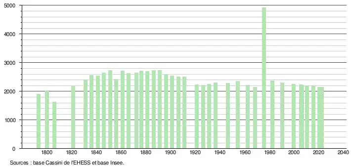 - ↑ Fiches Insee - Populations de référence de la commune pour les années 2006, 2007, 2008, 2009, 2010, 2011, 2012, 2013, 2014, 2015, 2016, 2017, 2018, 2019, 2020, 2021 et 2022.
