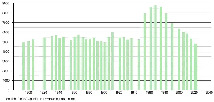 - ↑ Fiches Insee - Populations de référence de la commune pour les années 2006, 2007, 2008, 2009, 2010, 2011, 2012, 2013, 2014, 2015, 2016, 2017, 2018, 2019, 2020, 2021 et 2022.