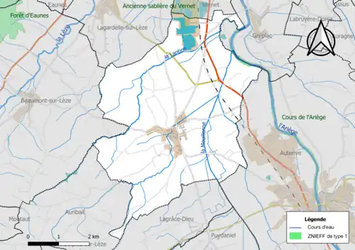 L’inventaire des zones naturelles d'intérêt écologique, faunistique et floristique (ZNIEFF) a pour objectif de réaliser une couverture des zones les plus intéressantes sur le plan écologique, essentiellement dans la perspective d’améliorer la connaissance du patrimoine naturel national et de fournir aux différents décideurs un outil d’aide à la prise en compte de l’environnement dans l’aménagement du territoire. Deux ZNIEFF de type 1[Note 3] sont recensées sur la commune[23] : l'« ancienne sablière du Vernet » (67 ha), couvrant 3 communes du département[24] et le « cours de l'Ariège » (1 341 ha), couvrant 56 communes dont 43 dans l'Ariège et 13 dans la Haute-Garonne[25] et une ZNIEFF de type 2[Note 4],[23] : « l'Ariège et ripisylves » (1 975 ha), couvrant 56 communes dont 43 dans l'Ariège et 13 dans la Haute-Garonne[26].