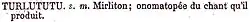 - ↑ Article Mirliton de l'Abrégé du dictionnaire de l'Académie française, d'après la dernière édition de 1878, ancien vocabulaire Nodier, entièrement refondu, et suivi d'un appendice comprenant tous les mots en usage non encore admis par l'Académie et d'un dictionnaire de géographie ancienne et moderne, Éditeur : imprimerie de Firmin-Didot, Paris 1883, page 618.