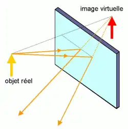 L'image d'un objet par un miroir plan est le symétrique orthogonal de l'objet par rapport au plan du miroir[2].