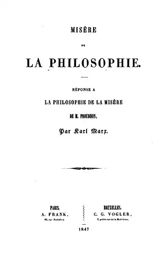 Misère de la philosophie ou Misère de la philosophie. Réponse à la philosophie de la misère de M. Proudhon est une œuvre de Karl Marx parue en juin 1847 à Bruxelles en son exil. Son titre constitue une reprise inversée de l'ouvrage de Proudhon, Philosophie de la misère. Le texte est écrit en français bien que la plupart des œuvres de Marx soient écrites en allemand. Il s'agit d'une critique, reprenant point par point les arguments avancés dans Philosophie de la misère et tentant de les démonter ou de montrer qu'ils enfoncent des portes ouvertes.