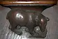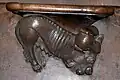 - Echternach, basilique Saint-Willibrord : fruits, fleurs et feuillages, homme végétal, chauve-souris, canetons. Mais surtout, ensemble somptueux de jouées surmontant les accotoirs des stalles (renard, canards, lion, éléphant, oiseau fantastique et personnages).