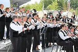 Le Kevrenn Alre (ici en 2012) a participé à la chanson Trenkenn Fisel. - Trenkenn Fisel qui ouvre le second disque est un instrumental épique structuré long de presque huit minutes où la guitare électrique se marie aux cornemuses et bombardes[8]. Du rock dans la veine seventies mais avec des couleurs bretonnes, style qui a fait le succès de Matmatah par le passé[6]. Ce morceau de bravoure est marqué par la rencontre entre Matmatah et la musique bretonne traditionnelle avec le renfort de David Pasquet et de la Kevrenn Alre, donnant au résultat un fisel à la sauce rock et joli clin d’œil à ses racines bretonnes[14], qui enchaîne blues pesant et ritournelle celtique[6]. Ce titre était déjà interprétée par le groupe, David Pasquet et la Kevrenn Arle en concert au festival des Vieilles Charrues en 2022 avant la sortie de l'album[14] où le groupe a présenté son nouveau guitariste Léo.