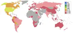 Argentine , Estonie , Ghana , Îles Caïmans , Îles Mariannes du Nord , Islande , Nouvelle-Zélande , Sainte-Lucie , Saint-Martin , Saint-Vincent-et-les-Grenadines , Suède .