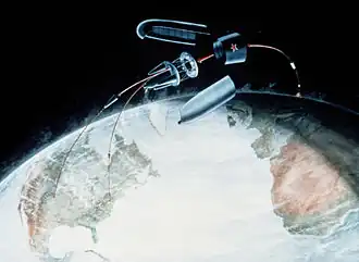 Cependant, l'URSS avait durant la guerre froide des armes biologiques embarquées à bord de certains missiles[3]. Jusqu'en 1992, le système AN/DRC-8 Emergency Rocket Communications System (en) fournissait aux États-Unis une capacité de lancement rapide de satellites de télécommunications, en remplaçant la charge utile nucléaire d'un ICBM Minuteman par un répéteur UHF[4].