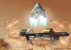 - Le décollage depuis le sol de Mars nécessite de disposer in situ d'un lanceur de grande taille. |