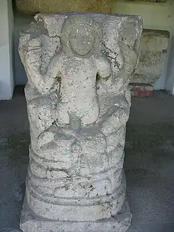 - Mithra pétrogène I[6] : Le bas-relief en calcaire (0,98 × 0,55 m) représente la naissance de Mithra dans le rocher. Nu et sortant du rocher jusqu'à mi-cuisse, il tient une torche allumée dans sa main gauche levée et un poignard dans sa main droite. Le rocher est entouré par un serpent qui lève la tête vers le dieu.