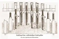 - Canon revolver, qui présente un fonctionnement comparable (plusieurs chambres dans un système rotatif), mais avec un seul tube.