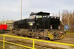 Les locomotives mises en location par MRCE portent une livrée noire très inhabituelle dans un domaine où la visibilité du matériel est une mesure de sécurité passive.
