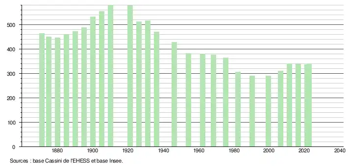 - ↑ Population municipale de référence en vigueur au 1er janvier 2025, millésimée 2022, définie dans les limites territoriales en vigueur au 1er janvier 2024, date de référence statistique : 1er janvier 2022.