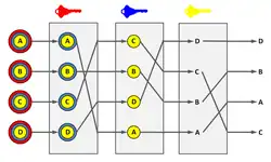 - ↑ du point de vue formelle nous pouvons considérer que les serveurs d'Alice et de Bob font partie du réseau (cas d'une communication peer-to-peer, ou qu'ils sont extérieurs à ce réseau, les premiers et dernier serveurs du chemin servant alors respectivement de points d'entrée et de sortie au réseau peer-to-peer, la présentation du présent article article se place dans cette seconde perspective