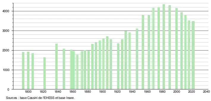 - ↑ Fiches Insee - Populations de référence de la commune pour les années 2006, 2007, 2008, 2009, 2010, 2011, 2012, 2013, 2014, 2015, 2016, 2017, 2018, 2019, 2020, 2021 et 2022.
