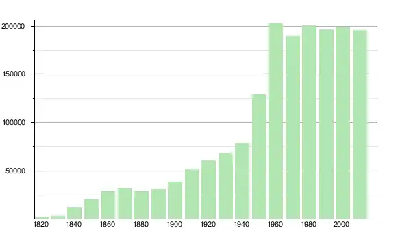 La période de reconstruction d'après-guerre prit fin en 1874 lorsque les Démocrates remportèrent la municipalité[66]. À la fin du XIXe siècle, la ville connut une dépression économique et la banqueroute de la municipalité. Entre 1878 et 1882, la balance des exportations de la ville s'effondra de neuf millions à trois millions de dollars[67].