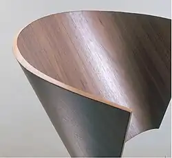 Si les couches de placage sont disposées dans le même sens de fil , il s'agit de bois lamellé-collé moulé. Il est utilisé pour les accoudoirs et les cadres de chaise. Une fois les pièces pressées, elles sont finies à la machine.