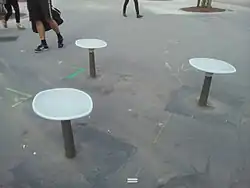 Sièges individuels (type banc Champignon) sur la place Jussieu, à Paris.
