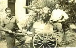 - ↑ Emmanuel Luis, « Entre envois à la fonte et souci de sauvegarde, la statuaire publique sous le régime de Vichy dans le Calvados », Bulletin de la société des antiquaires de Normandie, vol. LXXV (2016), , p. 34-35
