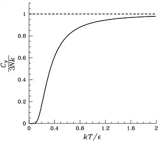 où ℏ est la constante de Planck réduite, ωE est la pulsation d’un oscillateur, N le nombre d’atomes qui constituent le système et où kB est la constante de Boltzmann et T la température absolue.