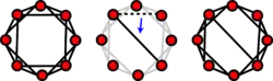 - On part d'un graphe en anneau en treillis (Graphe de Cayley): chacun des nœud est connecté à voisins, de chaque côté ;