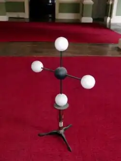 Le concept de la liaison chimique en tant que lien direct entre les atomes peut être modélisé en reliant des boules (atomes) avec des bâtons/tiges (liaisons). Cela a été extrêmement populaire et est encore largement utilisé aujourd'hui. Initialement, les atomes étaient constitués de boules en bois sphériques avec des trous spécialement percés pour les tiges. Ainsi, le carbone peut être représenté comme une sphère avec quatre trous aux angles tétraédriques cos −1 (− 1/3) ≈ 109,47°.