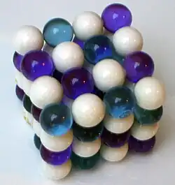 Les composés binaires chlorure de sodium (NaCl) et chlorure de césium (CsCl) ont des structures cubiques mais ont des groupes spatiaux différents. Cela peut être rationalisé en termes d'emballage serré de sphères de différentes tailles. Par exemple, NaCl peut être décrit comme des ions chlorure compacts (dans un réseau cubique à faces centrées) avec des ions sodium dans les trous octaédriques. Après le développement de la cristallographie aux rayons X comme outil de détermination des structures cristallines, de nombreux laboratoires ont construit des modèles basés sur des sphères. Avec le développement des boules en plastiques ou en polystyrènes, il est maintenant facile de créer de tels modèles.