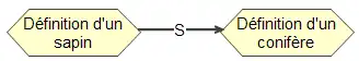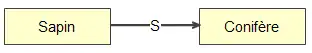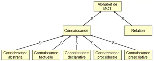 - Lien S : le lien de Spécialisation associe deux connaissances abstraites de même type dont la première est une spécialisation de la seconde. Ce lien est notamment utile dans la description des taxonomies. Le lien de spécialisation est une relation transitive.