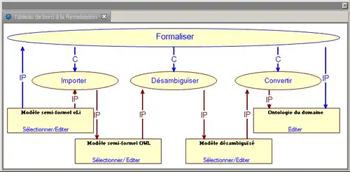 OntoFORM, Le module de formalisation dont l'interface est un tableau de bord (voir la figure 11) est un module qui assiste le cogniticien dans la tâche de formalisation du modèle semi-formel en ontologie. Les trois étapes d'importation, de désambiguïsation et de transformation qui composent la réalisation de cette tâche y sont représentées. À chacune des étapes, le cogniticien a l'opportunité d'éditer l’ontologie résultante.
