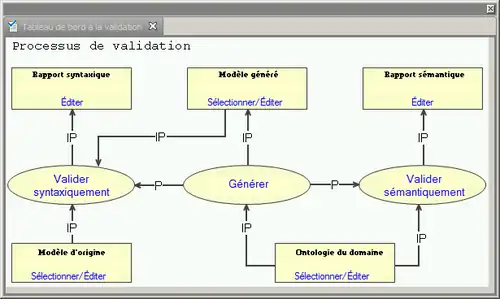 En ingénierie ontologique, la validation est une étape essentielle à toute production d'ontologies. Dans un modèle, on utilise un vocabulaire, une grammaire et une sémantique pour représenter les connaissances associées à un domaine. Pendant la formalisation d'un modèle semi-formel, certaines opérations peuvent modifier des éléments de vocabulaire (le critère syntaxique) ou altérer le sens de la représentation (le critère sémantique). Il importe donc d'implanter un mécanisme de validation qui assure qu'aucune altération de la syntaxe et de la sémantique du modèle ne soit induite par le processus de transformation. La méthode de validation, régie par l'ingénieur, l'expert et l'assistant informatique intelligent à la validation (OntoVAL), comporte un processus de validation syntaxique et un processus de validation sémantique. Le but de la validation syntaxique est de fournir au cogniticien un mécanisme de détection des erreurs informatiques qui peuvent survenir dans la production de l'ontologie cible. L'idée soutenant ce processus est que tous les éléments et relations du modèle d'origine doivent être représentées dans l'ontologie du domaine. De cette idée, nous supposons qu'un modèle reconstruit à partir de l'ontologie du domaine devrait être identique au modèle d'origine en termes d'entités et de relations. OntoVAL produit un rapport de validation syntaxique qui exprime les éventuelles anomalies syntaxiques entre les modèles.