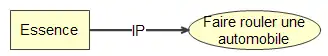 - Lien I/P : le lien Intrant/Produit sert à associer une connaissance procédurale à une connaissance conceptuelle afin de représenter l'intrant ou le produit d'une procédure. Ce lien est notamment utile dans la description des algorithmes, des processus et des méthodes. Le lien intrant/produit n'est pas une relation transitive.