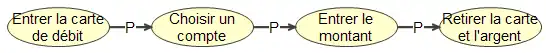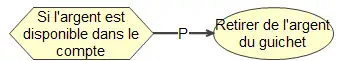 Le lien « P », qui se lit « lien de précédence » met en relation des procédures ou des principes. Il sert à ordonner la séquence d’exécution des procédures ou l’ordonnancement de l’application de principes.