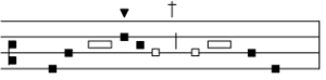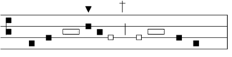 - Ou à la paire C-B (fa la) puis à des formules triples en ré mineur, typiquement accompagnées par des formules type du premier mode.