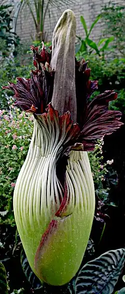- Toutes les caractéristiques de la plante se réfèrent à l'Arum titan, espèce endémique de Sumatra, dont le nom scientifique fait allusion au fait que le spadice de sa fleur rappelle un phallus malformé... Quant à l'odeur, Krusty déclare que la plante pue encore plus que les boots de Mickey Rourke.