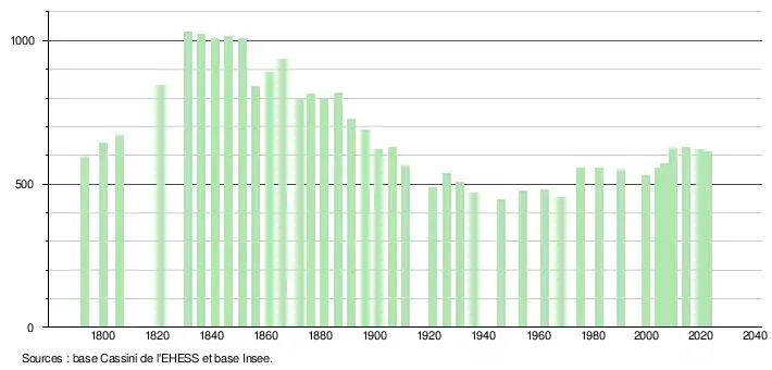- ↑ Fiches Insee - Populations de référence de la commune pour les années 2006, 2007, 2008, 2009, 2010, 2011, 2012, 2013, 2014, 2015, 2016, 2017, 2018, 2019, 2020, 2021 et 2022.