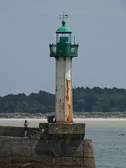 - ↑ Sarah Humbert, « REPORTAGE. « C’est un symbole pour la commune » : le phare de Moguériec a retrouvé les flots », sur ouest-france.fr, (consulté le ).