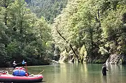 La rivière se replie sur elle-même dans un bras mort et peu après les rapides, elle devient plus large, alors qu’elle passe dans une section de grade III. Les camps du DOC sont présents tout au long de son parcours de 68 km[3].
