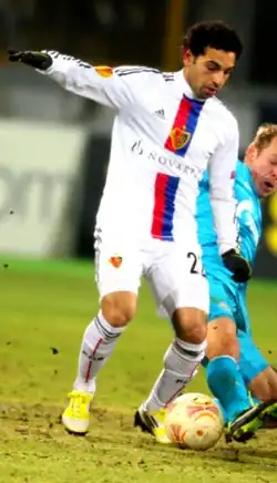 Le , le footballeur inscrit son premier but pour le FC Bâle lors de son premier match. À la fin du match, son entraîneur, Heiko Vogel (en), déclare que Salah serait un élément essentiel de l'équipe pour faire mal à l'adversaire pendant toute la durée de la saison[12]. Le joueur devient rapidement la star du club, tout d'abord en étant à l'origine des trois buts contre le FC Thoune[13] durant le match de championnat suisse puis en donnant une passe décisive et en inscrivant son premier but lors du match contre Lausanne. Il se classe dans le top 15 des meilleurs jeunes attaquants au monde. En 2012, il est le seul représentant africain au Golden Boy, trophée qui récompense le meilleur espoir de l'année en Europe. Le , l'ailier termine en tête des votes sur internet sur plus de 400 000 votes. Il est donc le vainqueur du trophée sur Internet bien que le vrai vainqueur soit désigné par une commission officielle[14]. Le footballeur est aussi nommé meilleur espoir de l'année 2012 par la Confédération africaine de football. Le , dans un entretien avec la chaîne de télévision égyptienne Melody Sport, Salah confie qu'il voudrait rejoindre le Borussia Dortmund, mais que le FC Bâle refuserait surement de le vendre, en tant que club jumelé au Bayern Munich, dont les recruteurs l'ont conseillé au FC Bâle. L'athlète déclare ensuite : « J'aime le style de Dortmund et je pense qu'il est similaire à notre façon de jouer avec l'équipe d'Égypte »[15]. Le , lors du quart de finale aller de Ligue Europa contre Tottenham Hotspur, il réalise une performance remarquée. Le portier adverse, Brad Friedel, déclare à la fin du match : « Il était excellent ». Le gardien suisse, Yann Sommer annonce quant à lui : « Tottenham ne savait pas comment l'arrêter ». Mohamed Salah reçoit même les louanges de son président Bernhard Heusler : « S'il était plus réaliste, je pourrais rajouter un zéro à son prix ! »[16]. Le , la presse italienne fait état d'un intérêt de l'Inter Milan pour Salah[17]. Le , c'est Manchester United qui s'intéresse à la star du FC Bâle[18]. Le , le Daily Mail annonce l’intérêt de Tottenham Hotspur et de son entraîneur, André Villas-Boas, pour le jeune joueur[19].