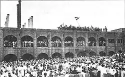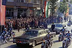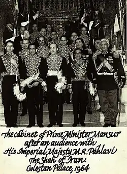 Le , soit quelques mois à peine après avoir échappé à la mort dans un accident d'avion, lors d'une visite d'inspection au barrage de Zayandeh rud, le chah fait l'objet d'une tentative d'assassinat durant les célébrations du dixième anniversaire de l'université de Téhéran[39]. Arrivé par la porte principale du bâtiment, Mohammad Reza Pahlavi reçoit deux balles d'un pistolet de petit calibre, un 6,35 mm[40]. La première balle atteint la joue droite, passant entre la gencive et la lèvre, et sort sous le nez. La seconde effleure le dos, arrachant des chairs de l'omoplate[41]. Bien que les blessures soient jugées graves, elles sont plus impressionnantes que mortelles ; aucun organe vital n'ayant été touché, le chah n'a à subir que des points de suture et sort de l'hôpital militaire no 1 quelques heures après. De retour au palais impérial, Mohammad Reza Pahlavi s'adresse à la nation dans un communiqué radiodiffusé et poursuit ses activités comme à l'accoutumée[42].