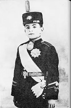 En 1925, bénéficiant d'une éducation stricte à la fois militaire et occidentale, Mohammad Reza Pahlavi gagne le prytanée Nezam, deux jours après qu'une loi lui confère le titre de prince héritier, qu'il devient officiellement le . Son éducation est supervisée par le doyen du clan Pahlavan, dont Reza Chah est issu. Dans les faits, cependant, cela étant plutôt un hommage du nouvel empereur à son clan, c'est Soleiman Behboudi, valet et homme de confiance de Reza Chah, qui s'occupe de cette éducation[A 4]. Le jeune prince intègre ensuite un institut au sein duquel sont scolarisés les enfants des ministres ainsi que ceux des courtisans[A 5].
