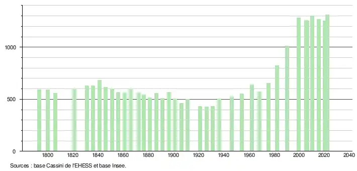 - ↑ Fiches Insee - Populations de référence de la commune pour les années 2006, 2007, 2008, 2009, 2010, 2011, 2012, 2013, 2014, 2015, 2016, 2017, 2018, 2019, 2020, 2021 et 2022.