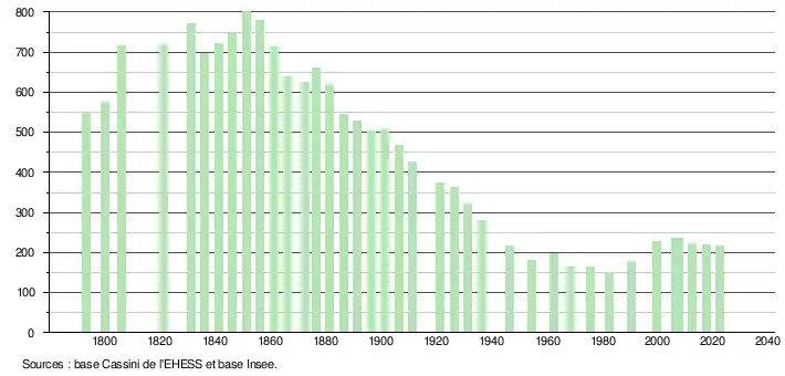 - ↑ Fiches Insee - Populations de référence de la commune pour les années 2006, 2007, 2008, 2009, 2010, 2011, 2012, 2013, 2014, 2015, 2016, 2017, 2018, 2019, 2020, 2021 et 2022.