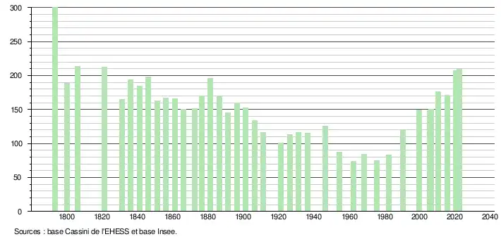 - ↑ Population municipale de référence en vigueur au 1er janvier 2025, millésimée 2022, définie dans les limites territoriales en vigueur au 1er janvier 2024, date de référence statistique : 1er janvier 2022.