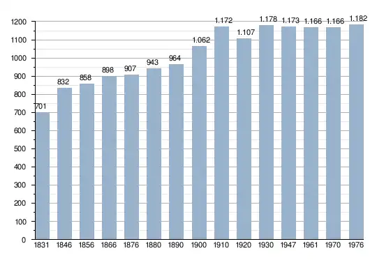 - Sources : INS, Rem. : 1831 jusqu'en 1970 = recensements, 1976 = nombre d'habitants au 31 décembre.