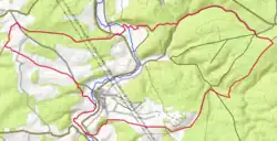 L'occupation des sols de la commune, telle qu'elle ressort de la base de données européenne d’occupation biophysique des sols Corine Land Cover (CLC), est marquée par l'importance des forêts et milieux semi-naturels (62 % en 2018), en diminution par rapport à 1990 (63,3 %). La répartition détaillée en 2018 est la suivante : forêts (56,6 %), terres arables (31,4 %), milieux à végétation arbustive et/ou herbacée (5,4 %), cultures permanentes (3 %), zones urbanisées (1,5 %), prairies (1,2 %), zones agricoles hétérogènes (0,9 %)[11]. L'évolution de l’occupation des sols de la commune et de ses infrastructures peut être observée sur les différentes représentations cartographiques du territoire : la carte de Cassini (XVIIIe siècle), la carte d'état-major (1820-1866) et les cartes ou photos aériennes de l'IGN pour la période actuelle (1950 à aujourd'hui)[Carte 1].